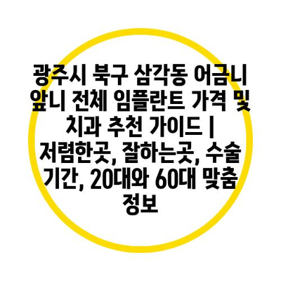 광주시 북구 삼각동 어금니 앞니 전체 임플란트 가격 및 치과 추천 가이드 | 저렴한곳, 잘하는곳, 수술 기간, 20대와 60대 맞춤 정보