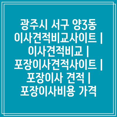 이사견적비교사이트는 이사 방법을 더욱 쉽고 저렴하게 만들어줍니다. 이제 광주시 서구 양3동에서 걱정 없이 이사를 준비하세요.