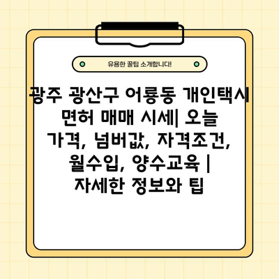 광주 광산구 어룡동 개인택시 면허 매매 시세| 오늘 가격, 넘버값, 자격조건, 월수입, 양수교육 | 자세한 정보와 팁