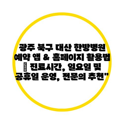 광주 북구 대산 한방병원 예약 앱 & 홈페이지 활용법 | 진료시간, 일요일 및 공휴일 운영, 전문의 추천”