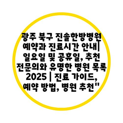 광주 북구 진솔한방병원 예약과 진료시간 안내| 일요일 및 공휴일, 추천 전문의와 유명한 병원 목록 2025 | 진료 가이드, 예약 방법, 병원 추천”