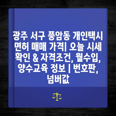 “광주 서구 풍암동 개인택시 면허 매매 관련 정보는 면허 시세 확인, 매매 과정, 자격 조건 등 다양한 측면을 고려해야 합니다.”