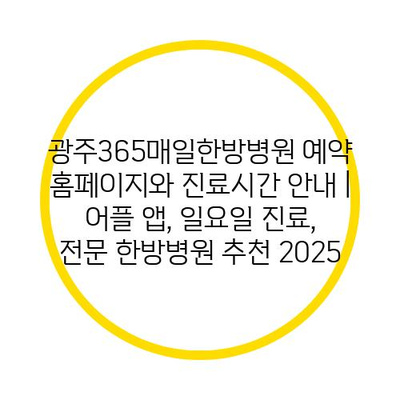 광주365매일한방병원 예약 홈페이지와 진료시간 공지 | 어플 앱, 일요일 진료, 전문 한방병원 추천 2025에 대해 소개합니다.