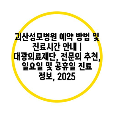 괴산성모병원 예약 방법 및 진료시간 공지 | 대광의료재단, 전연락 추천, 일요일 및 공휴일 진료 정보, 2025에 대해 자주 묻는 질문 TOP 5
