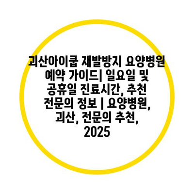 괴산아이쿱 재발방지 요양병원 예약 설명서| 일요일 및 공휴일 진료시간, 추천 전연락 정보 | 요양병원, 괴산, 전연락 추천, 2025 에 대해 자주 묻는 질문 TOP 5