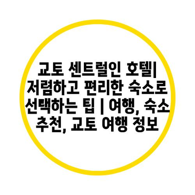 교토 여행을 계획할 때 숙소의 위치는 매우 중요한 요소입니다. 교토 센트럴인 호텔은 교토의 중심부에 위치해 있어, 주요 관광지와의 접근성이 뛰어나 많은 여행객들에게 인기가 높습니다.