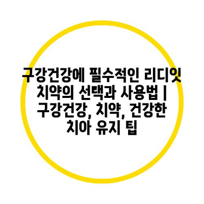 리디잇 치약을 효과적으로 사용하는 방법은 치아 건강을 유지하는 데 필수적입니다. 바른 사용법을 익히는 것이 중요합니다.