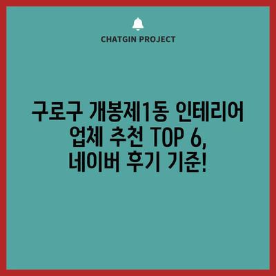 💡 구로구 개봉제1동 인테리어 업체들에 대한 고객 후기와 추천 정보를 확인해 보세요. 💡