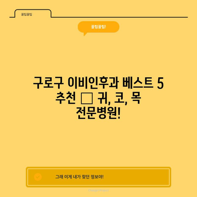 💡 구로구 최고의 이비인후과 정보를 지금 바로 알아보세요! 💡