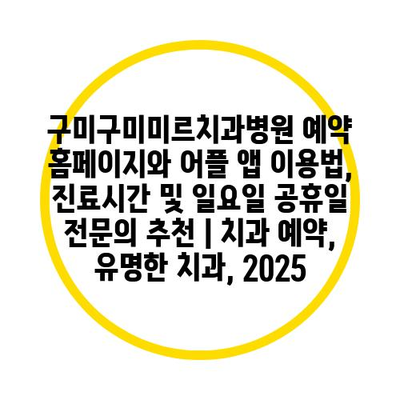 구미구미미르치과병원 예약 홈페이지와 어플 앱 이용법, 진료시간 및 일요일 공휴일 전연락 추천 | 치과 예약, 유명한 치과, 2025 에 대해 자주 묻는 질문 TOP 5