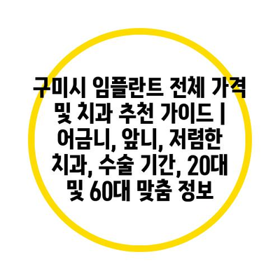 구미시 임플란트 전체 가격 및 치과 추천 설명서 | 어금니, 앞니, 저렴한 치과, 수술 날짜, 20대 및 60대 맞춤 정보