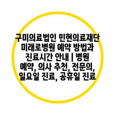 구미의료법인 민현의료재단 미래로병원 예약 방법과 진료시간 안내 | 병원 예약, 의사 추천, 전문의, 일요일 진료, 공휴일 진료