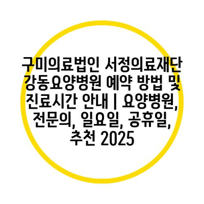 구미의료법인 서정의료재단 강동요양병원 예약 방법 및 진료시간 공지 | 요양병원, 전연락, 일요일, 공휴일, 추천 2025 에 대해 자주 묻는 질문 TOP 5
