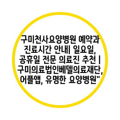 ✅ 구미천사요양병원의 진료시간과 예약 방법을 자세히 알아보세요.