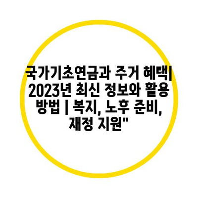 국가기초연금과 주거 혜택| 2023년 최신 정보와 활용 방법 | 복지, 노후 준비, 재정 지원”