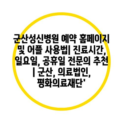 군산성신병원 예약 홈페이지 및 어플 사용법| 진료시간, 일요일, 공휴일 전연락 추천 | 군산, 의료법인, 평화의료재단’ 에 대해 자주 묻는 질문 TOP 5