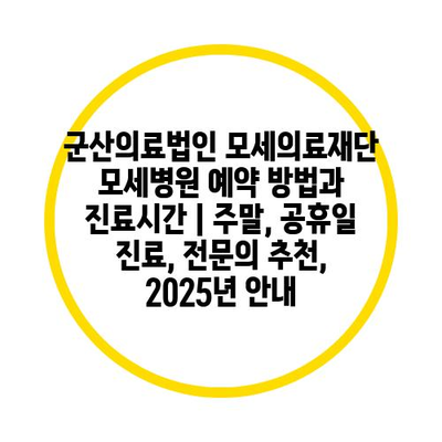 군산의료법인 모세의료재단 모세병원 예약 방법과 진료시간 | 주말, 공휴일 진료, 전문의 추천, 2025년 안내