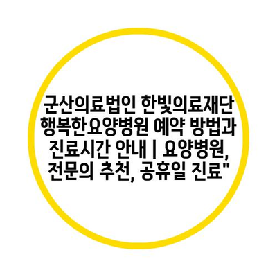 ✅ 군산의료법인 한빛의료재단의 예약 방법을 간편하게 알아보세요.