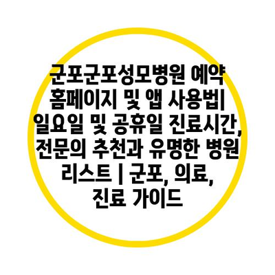 군포군포성모병원 예약 홈페이지 및 앱 사용법| 일요일 및 공휴일 진료시간, 전문의 추천과 유명한 병원 리스트 | 군포, 의료, 진료 가이드
