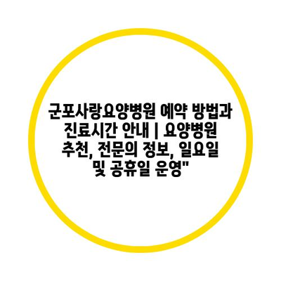 군포사랑요양병원 예약 방법과 진료시간 공지 | 요양병원 추천, 전연락 정보, 일요일 및 공휴일 운영에 대해 자주 묻는 질문 TOP 5