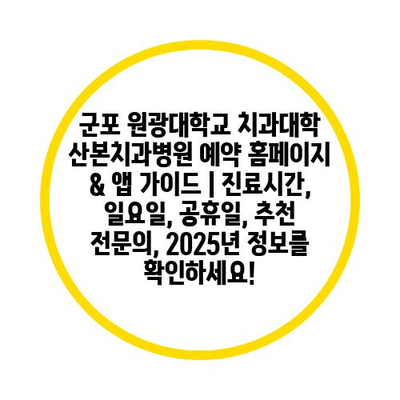 군포 원광대학교 치과대학 산본치과병원 예약 홈페이지 & 앱 가이드 | 진료시간, 일요일, 공휴일, 추천 전문의, 2025년 정보를 확인하세요!