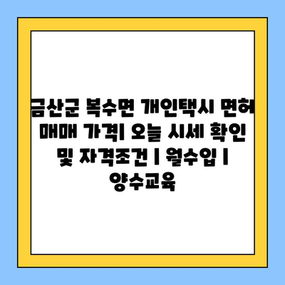 금산군 복수면 개인택시 면허 매매 시장의 현황과 가격 정보, 월수입 예상, 자격 조건, 양수 교육까지! 상세 정보를 알아보세요.
