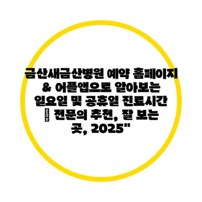 금산새금산병원 예약 홈페이지 & 어플앱으로 알아보는 일요일 및 공휴일 진료시간 | 전문의 추천, 잘 보는 곳, 2025″