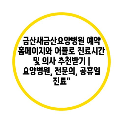 금산새금산요양병원 예약 홈페이지와 어플로 진료시간 및 의사 추천받기 | 요양병원, 전연락, 공휴일 진료”에 대해 자주 묻는 질문 TOP 5