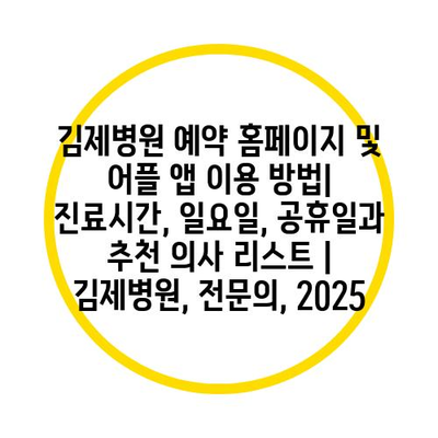 김제병원 예약 홈페이지 및 어플 앱 이용 방법| 진료시간, 일요일, 공휴일과 추천 의사 리스트 | 김제병원, 전연락, 2025 에 대해 자주 묻는 질문 TOP 5