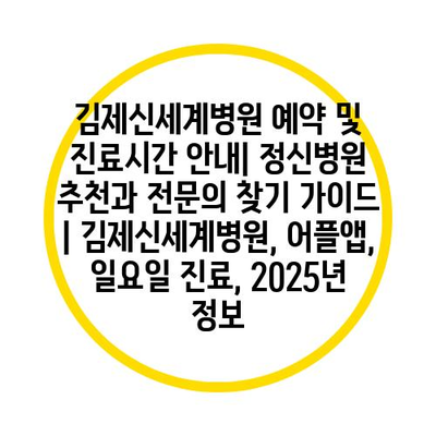 김제신세계병원 예약 및 진료시간 공지| 정신병원 추천과 전연락 찾기 설명서 | 김제신세계병원, 어플앱, 일요일 진료, 2025년 정보 에 대해 자주 묻는 질문 TOP 5