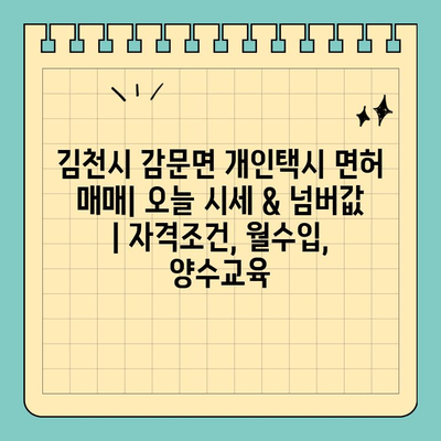 김천시 감문면 개인택시 면허 매매 시세, 넘버 값, 자격 조건 등 상세 정보를 확인하고 싶으신가요? 지금 바로 확인하세요!