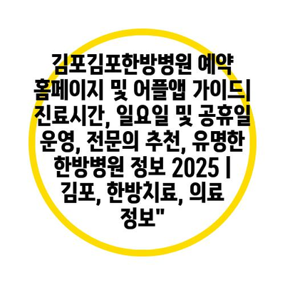 김포김포한방병원 예약 홈페이지 및 어플앱 설명서| 진료시간, 일요일 및 공휴일 운영, 전연락 추천, 유명한 한방병원 정보 2025 | 김포, 한방치료, 의료 정보” 에 대해 자주 묻는 질문 TOP 5