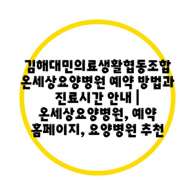 김해대민의료생활협동조합 온세상요양병원 예약 방법과 진료시간 공지 | 온세상요양병원, 예약 홈페이지, 요양병원 추천 에 대해 자주 묻는 질문 TOP 5