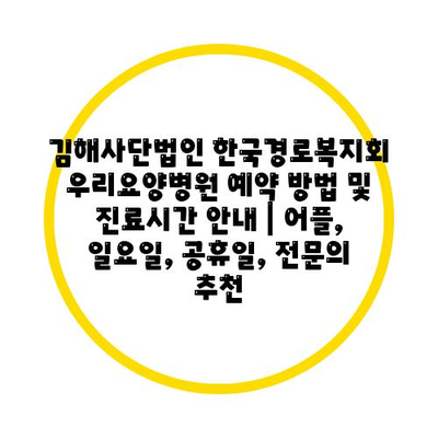 김해사단법인 한국경로복지회 우리요양병원 예약 방법 및 진료시간 안내 | 어플, 일요일, 공휴일, 전문의 추천