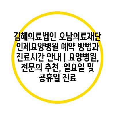김해의료법인 오남의료재단 인제요양병원 예약 방법과 진료시간 공지 | 요양병원, 전연락 추천, 일요일 및 공휴일 진료 에 대해 자주 묻는 질문 TOP 5