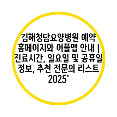 김해청담요양병원 예약 홈페이지와 어플앱 공지 | 진료시간, 일요일 및 공휴일 정보, 추천 전연락 리스트 2025′ 에 대해 자주 묻는 질문 TOP 5