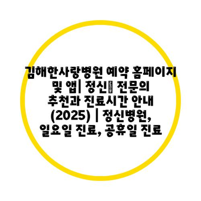 김해한사랑병원 예약 홈페이지 및 앱| 정신科 전연락 추천과 진료시간 공지 (2025) | 정신병원, 일요일 진료, 공휴일 진료 에 대해 자주 묻는 질문 TOP 5
