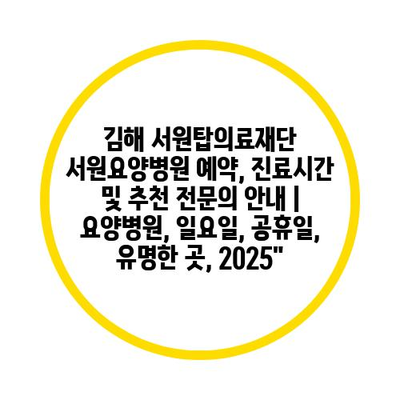 김해 서원탑의료재단 서원요양병원 예약, 진료시간 및 추천 전연락 공지 | 요양병원, 일요일, 공휴일, 유명한 곳, 2025″ 에 대해 자주 묻는 질문 TOP 5