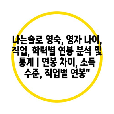 나는솔로 영숙, 영자 나이, 직업, 학력별 연봉 분석 및 통계 | 연봉 차이, 소득 수준, 직업별 연봉에 대해 알아보겠습니다.