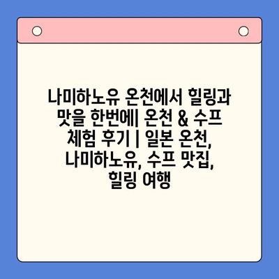 나미하노유 온천에서 힐링을 만끽하고, 근처 수프 맛집에서 맛있는 수프를 즐기는 것은 최고의 여행 조합입니다. 따뜻한 온천과 깊은 풍미의 수프가 어우러져 여행의 감동을 더욱 특별하게 만들어줄 것입니다.