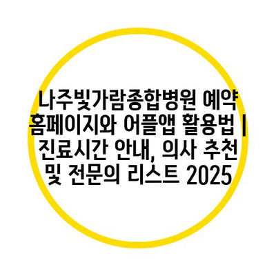 나주빛가람종합병원 예약 홈페이지와 어플앱 활용법 | 진료시간 공지, 의사 추천 및 전연락 리스트 2025 에 대해 자주 묻는 질문 TOP 5
