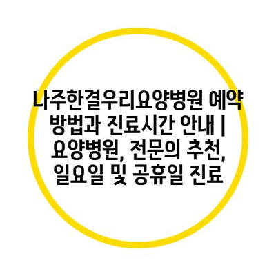 나주한결우리요양병원 예약 방법과 진료시간 공지 | 요양병원, 전연락 추천, 일요일 및 공휴일 진료 에 대해 자주 묻는 질문 TOP 5