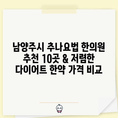 남양주시에서 추나요법과 다이어트 한약을 전문으로 하는 한의원 10곳을 추천합니다. 저렴한 가격을 비교하여 최적의 치료를 찾아보세요!