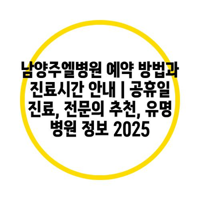 남양주엘병원 예약 방법과 진료시간 공지 | 공휴일 진료, 전연락 추천, 유명 병원 정보 2025에 대해 공지해 알려드리겠습니다.