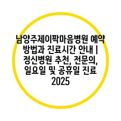 ✅ 남양주제이팍마음병원의 진료시간과 예약 방법을 지금 바로 알아보세요!