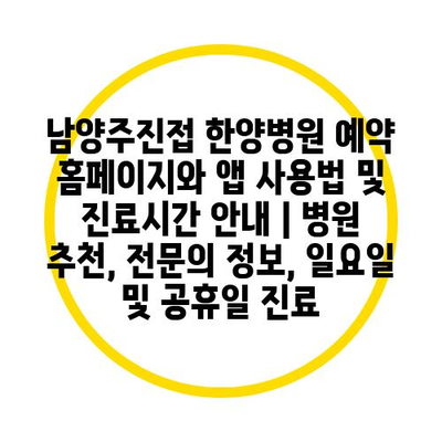 남양주진접 한양병원 예약 홈페이지와 앱 사용법 및 진료시간 안내 | 병원 추천, 전문의 정보, 일요일 및 공휴일 진료