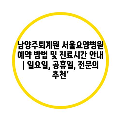 ✅ 남양주퇴계원 서울요양병원의 예약 방법과 진료시간에 대해 자세히 알아보세요.