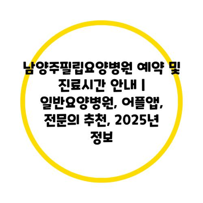 남양주필립요양병원 예약 및 진료시간 안내 | 일반요양병원, 어플앱, 전문의 추천, 2025년 정보