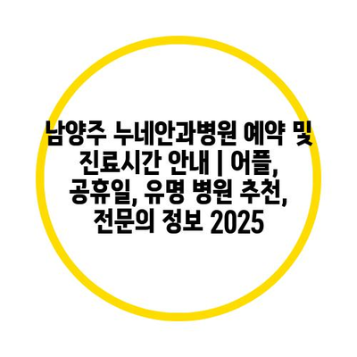 남양주 누네안과병원 예약 및 진료시간 안내 | 어플, 공휴일, 유명 병원 추천, 전문의 정보 2025