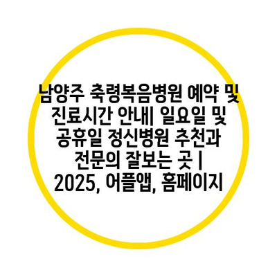 남양주 축령복음병원 예약 및 진료시간 공지| 일요일 및 공휴일 정신병원 추천과 전연락 잘보는 곳 | 2025, 어플앱, 홈페이지 에 대해 자주 묻는 질문 TOP 5